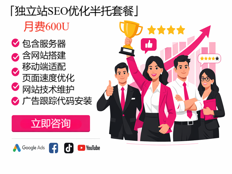「独立站SEO优化半托套餐」:含网站搭建、技术SEO与广告跟踪 | 月费600U