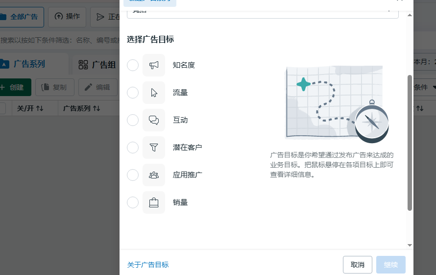 4:选择广告目标,网站一般选择流量,互动一般是速推帖子,速推视频,或者咨询。