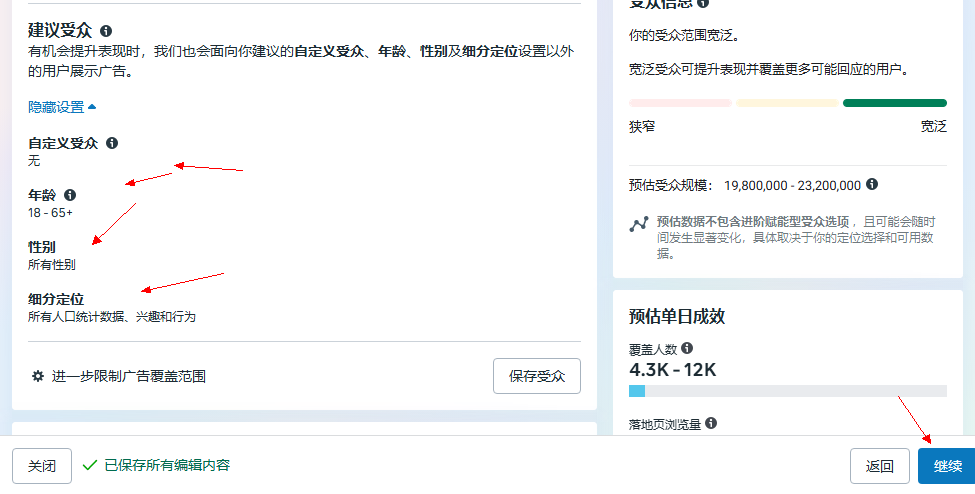 11:这里要注意:点击显示设置才会出来【建议受众】根据自己情况选择【年龄】【细分定位】