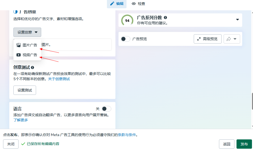 14:其他直接向下滑动,到设置创意,根据自己情况选择