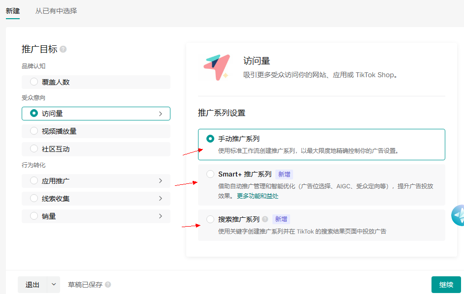 2:选择【手动推广系列】或者根据自己情况选择推广系列,继续下一步。