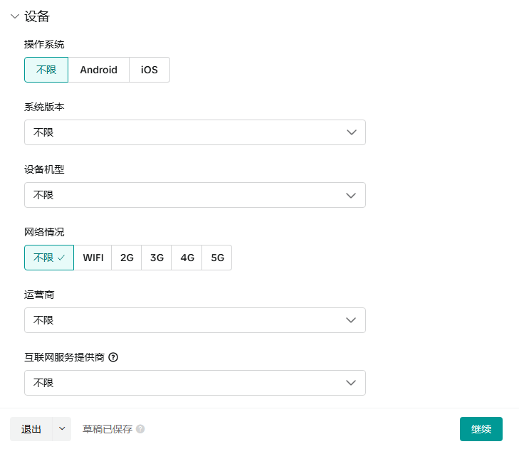 7:设备这里,暂时不做修改,等跑出数据后,通过转化情况再做筛选。