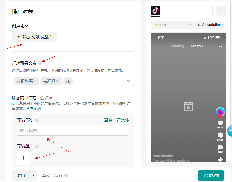 10:推广对象:可以添加视频或者图片,行动引导文案 可以默认,也可以根据自己情况新增。