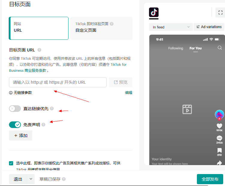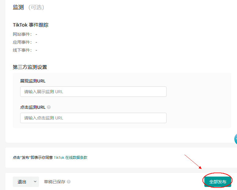 12:TikTok事件跟踪,这个是后面优化工作,暂时可以默认直接提交【全部发布】等广告审核通过后再一步步对接做优化。